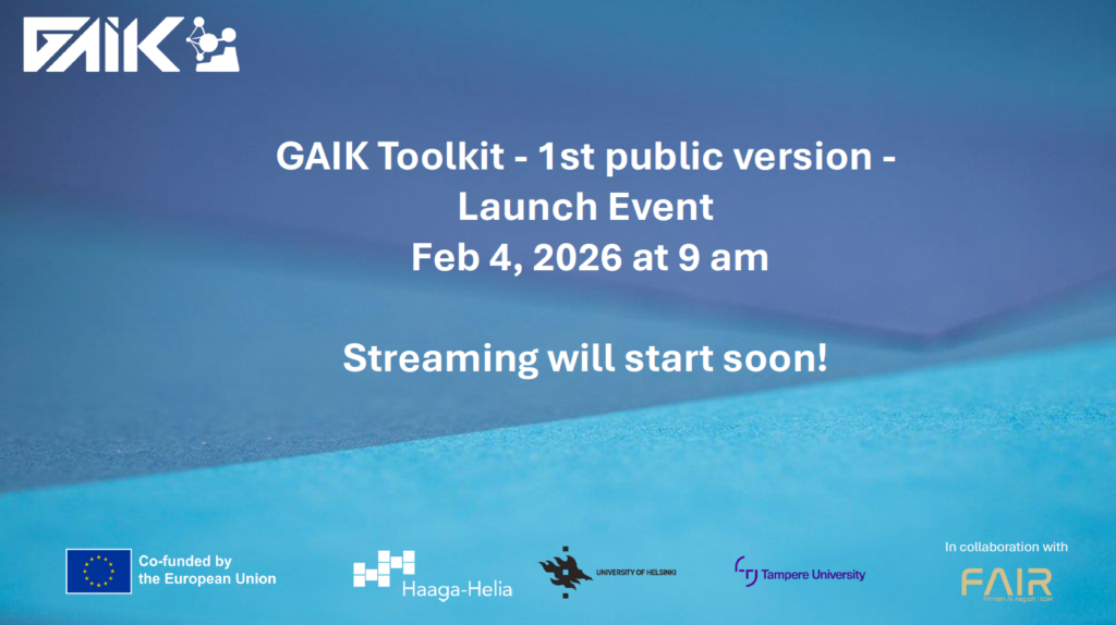 The GAIK Toolkit has officially launched, and everything you need to explore, test, and pilot it is now available. The toolkit launch event was held on February 4 at Haaga-Helia University of Applied Sciences in Helsinki, Finland, with parallel online streaming.
