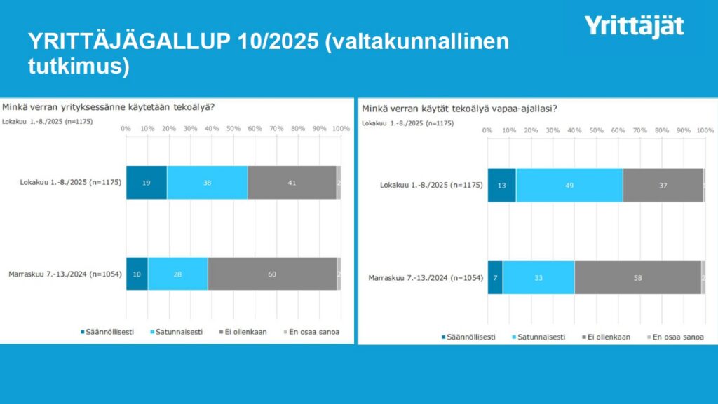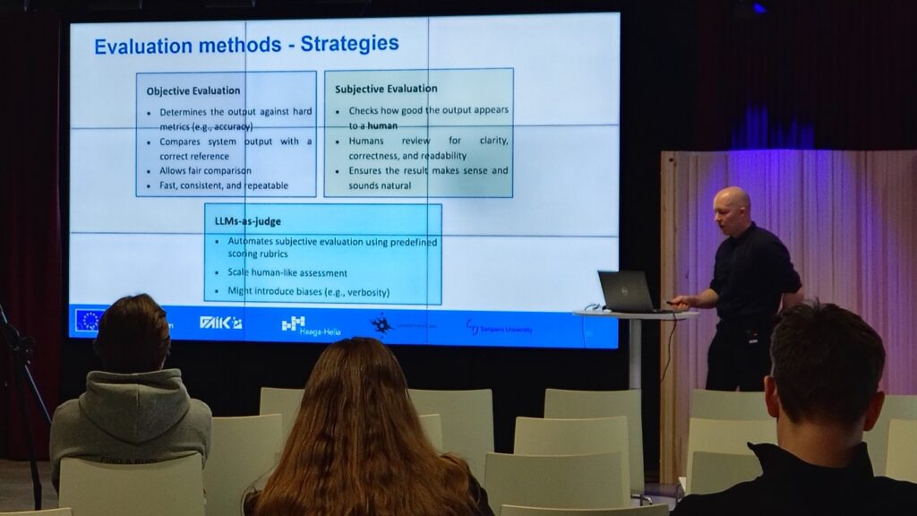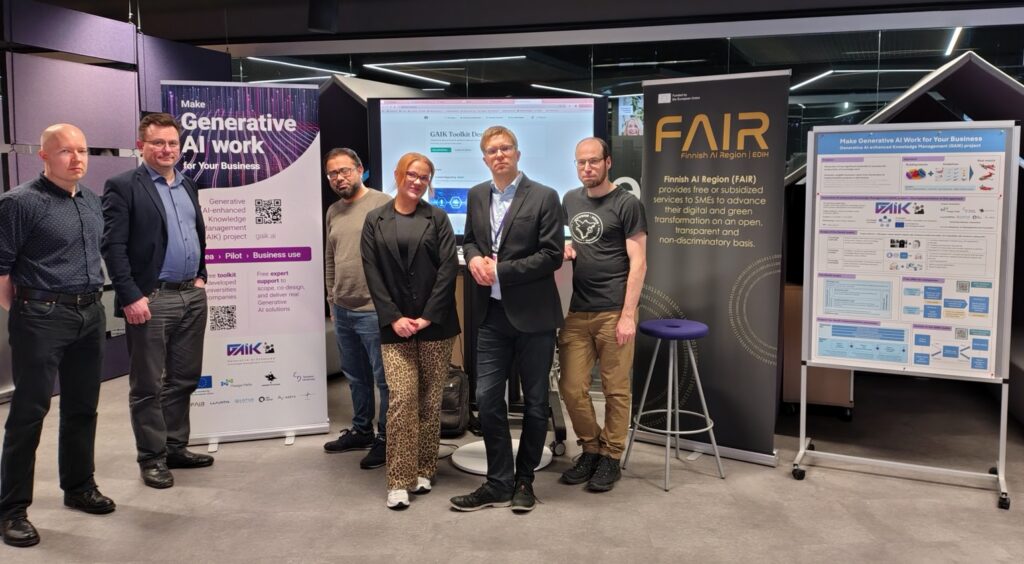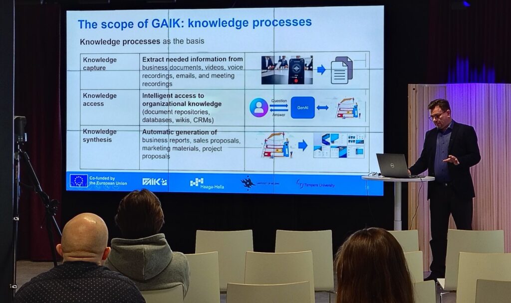 Business perspectives were shared by Kari Varis (Satakunta Entrepreneurs), who presented insightful survey results on how Finnish SMEs across different sectors are adopting and applying AI. These insights were complemented by practical research findings and real-world use cases from the GAIK project.